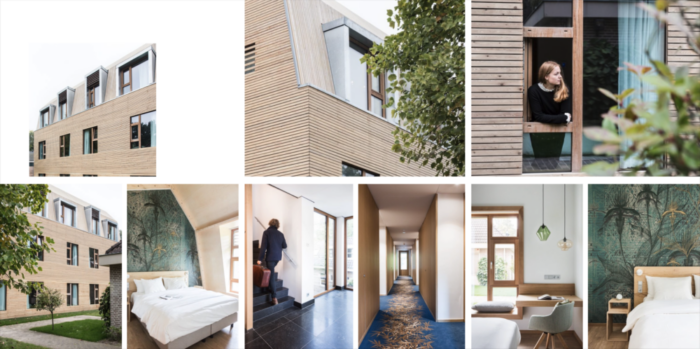 Het hotel bestaat uit 4 bouwlagen en op gezet in houtskeletbouw waarbij deels CLT en deels HSB is toegepast.